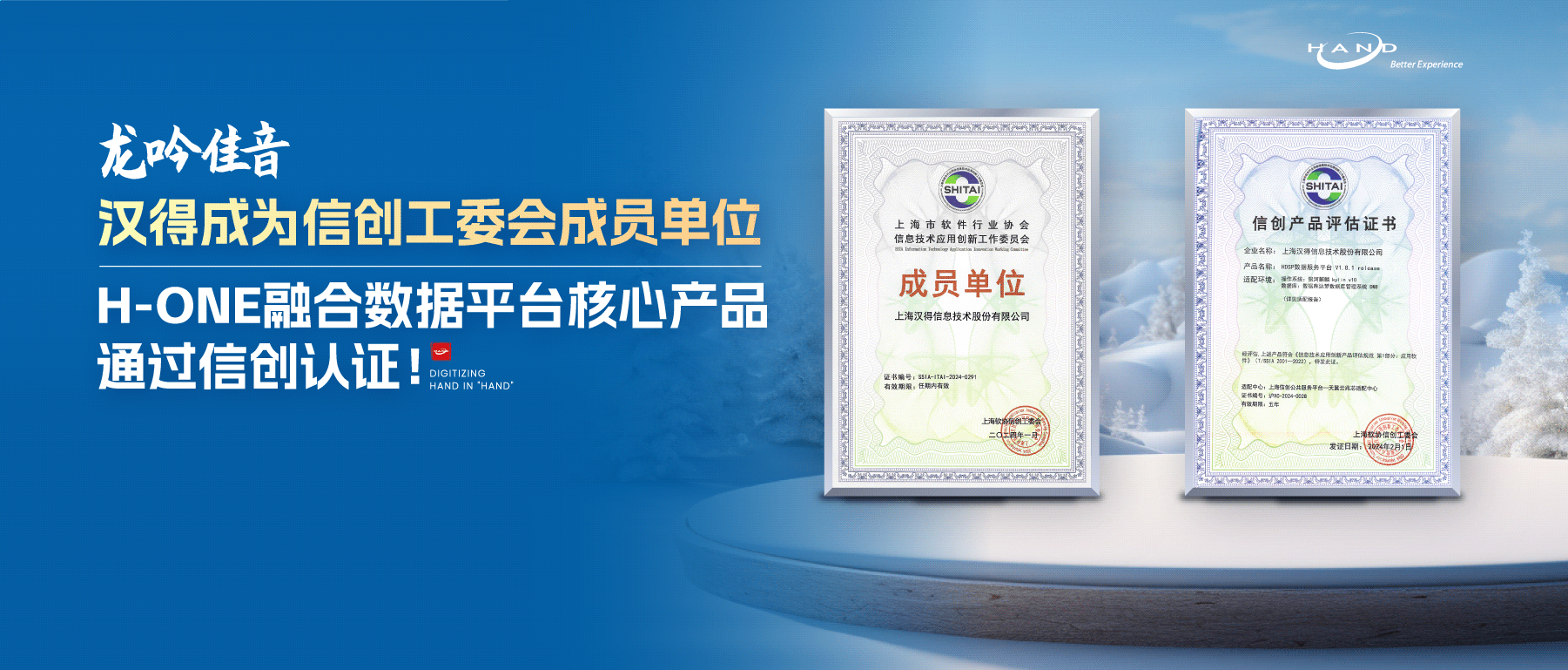 经过专家组严格评估,万象城AWC H-ONE 融合数据平台核心产品 HDSP 数据服务平台顺利顺利获得信创测试认证,荣获由上海软件行业协会信创工作委员会颁发的“信创产品评估证书”,自此 H-ONE 正式加入信创产品大家庭。