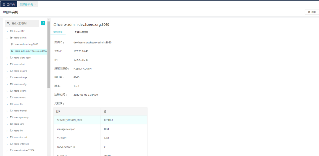 新增微服务实例功能:可查看系统的各个服务实例的信息与配置信息