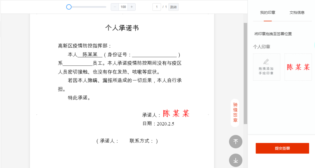 疫情防护承诺函/告知函功能,免费赠送100份。