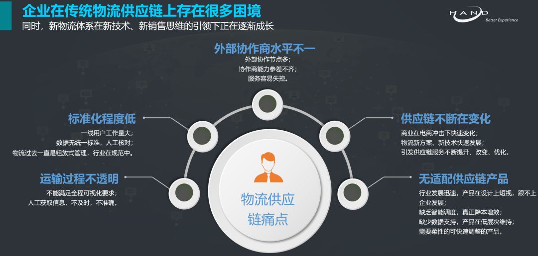 在此大背景下,要实现像快递那样已深入到普通用户的体验,对企业来说反而变得异常艰难,它不是难在技术,而是难在企业物流供应链的管理及改造。对此,企业管理者当前既无精准的数据支撑,也没有高效的提升手段。如何破局?
