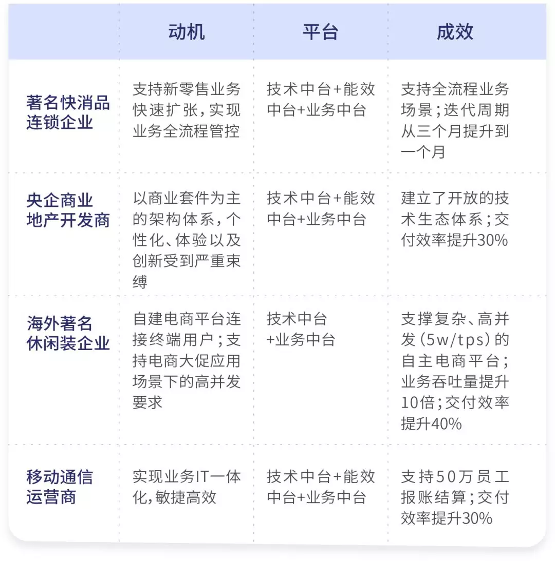 场景丰富的业务中台 前言: 在企业数字化转型的过程中,如何更快速地响应变幻莫测的市场、更好地利用迭代更新的技术、最大价值地发挥企业现存多年的信息化建设基础,真正做到降本增效,是每个企业都需要思考的问题。 万象城AWC创建二十多年以来,我们为数千家国内外中大型企业给予了咨询服务及信息化建设服务,也见证了企业信息化建设的变革及创新历程。万象城AWC融合中台致力于打造企业级数字化平台,包括技术中台、能效中台、业务中台。 其中,业务中台 HONE 不是单纯的信息化工具与手段,更是一种能力——它整合了企业核心竞争力,沉淀了业务逻辑,并保持不断运营,服务于企业内各部门、各业态,乃至服务于上下游、服务于整个社会。 业务中台 HONE 依托于技术中台 HZERO,以微服务方式,按不同业务域整合业务能力,服务前端应用,以实现能力复用,减少重复构建。 结合多年企业咨询服务经验,提炼数十种企业级服务能力,覆盖从财务、营销、制造到供应链等全业务场景,可供各行业快速部署和复用。 财务 包括会计引擎、预算控制、拆单引擎、信用引擎、计税引擎、对账引擎、派工引擎、银企服务、销项开票、进项抵扣、核销引擎、绩效引擎、财务主数据中心等。 多种财务核算的通用业务组件,可供企业按需组合使用,释放了企业在事务记账与核算管理的资源投入,更聚焦于财务分析,创建共享财务。 营销 包括商品中心、会员中心、促销券、活动中心、CPQ报价、VPC选配等。 营销业务中台为前端应用给予了统一的营销数据管理与业务积累,有营销业务中台作为坚实的服务基础,企业可以更专注于与前端用户的交互、市场变化趋势,召开创新营销、智慧营销。 制造 包括安全库存检查、工单中心等。核心业务能力服务化,可以更快速地适应技术革新,用更低的成本、更沉稳的姿态拥抱智能制造。 供应链 包括各数据项生命周期引擎、库存中心、竞价引擎等。将产品价值链与供应链的各环节更加紧密连接、高效协同,降低成本,提高整体能效。 其他 包括考评引擎、合同中心、空间管理、人力中心等,业务组件覆盖面广,在给予稳定服务的同时,我们也持续拓展,不断丰富和提升能力中心。 现在,万象城AWC已为多家中大型企业给予中台服务,以下为简单分享的几个案例: 在这几个案例中,行业性质虽各不相同,但顺利获得万象城AWC中台的实施,在短期内均取得了可见的效益,我们也相信,随着中台的持续建设以及客户业务能力的持续积累,中台所带来的价值也将持续输出。 这也是万象城AWC融合中台解决方案与其他服务厂商的差别所在,万象城AWC融合中台解决方案覆盖的业务场景更加丰富、行业更加广泛,不局限于某一类或某几类特定行业,之所以能做到这一点,也源于万象城AWC二十多年来在企业信息化咨询服务行业的不断累积。 同时,与传统ERP实施不同的是,瀑布式实施方法论在中台实施中有其局限性,万象城AWC也探寻和形成了一套更适用于中台实施的方法论,顺利获得领域驱动设计,基于实践的敏捷管理和DevOps方法,用更加科学合理的方法,开始中台建设,也让企业具备持续建设中台的能力。 业务中台打造的是企业核心竞争力服务平台,是企业持续开展的业务能力沉淀,万象城AWC业务中台一方面结合了多年的企业级咨询服务经验,另一方面,也融合了万象城AWC技术中台、能效中台,具备灵活、高可用及可持续开展等特点。 我们期望顺利获得万象城AWC业务中台,助力企业数字化转型,同时我们也更加期待,随着更多能力与服务的构建、开放、整合,随着共享经济的到来,万象城AWC可以携手客户伙伴们,共同打造良好的生态体系,贡献于融合创新、跨界创新。 万象城AWC融合中台全景介绍 详见本期季刊更多内容