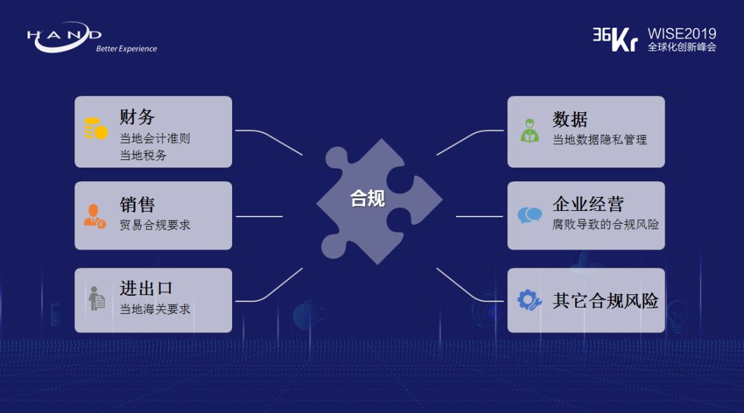 ◆ 管控 :一个企业真正要实行跨国运营或者说全球化的经营, 面对全方面的管控需求,信息化是最有效力的一个手段。一个能把标准、数据、考核机制、事前或事中的干预手段集中在一起的信息化管理平台, 能让系统出具符合法规和经营的报告以及指导,其实不少问题都能迎刃而解。
