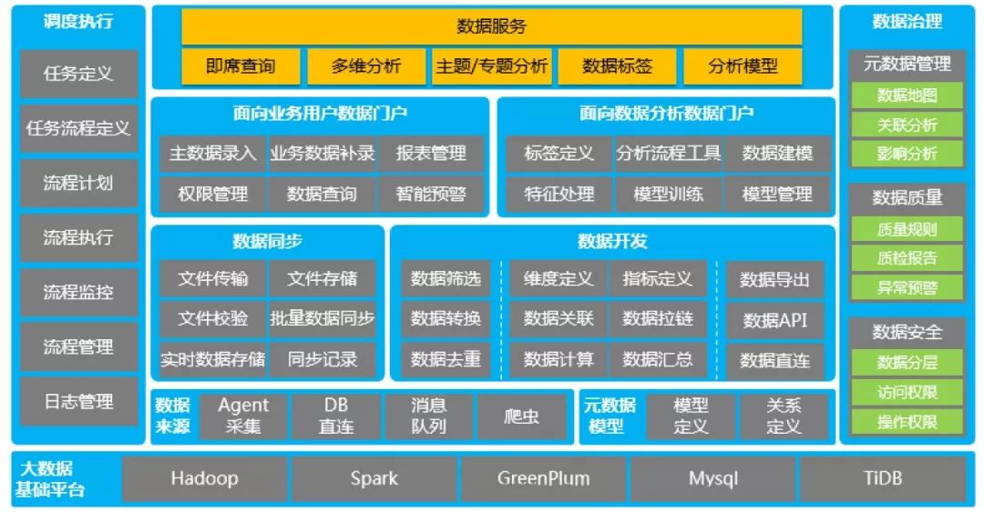 HDSP给予数据集成、数据开发、数据管理、数据治理、数据服务、任务调度等全方位的产品服务,降低开发者的开发成本,提高开发者的开发效率。