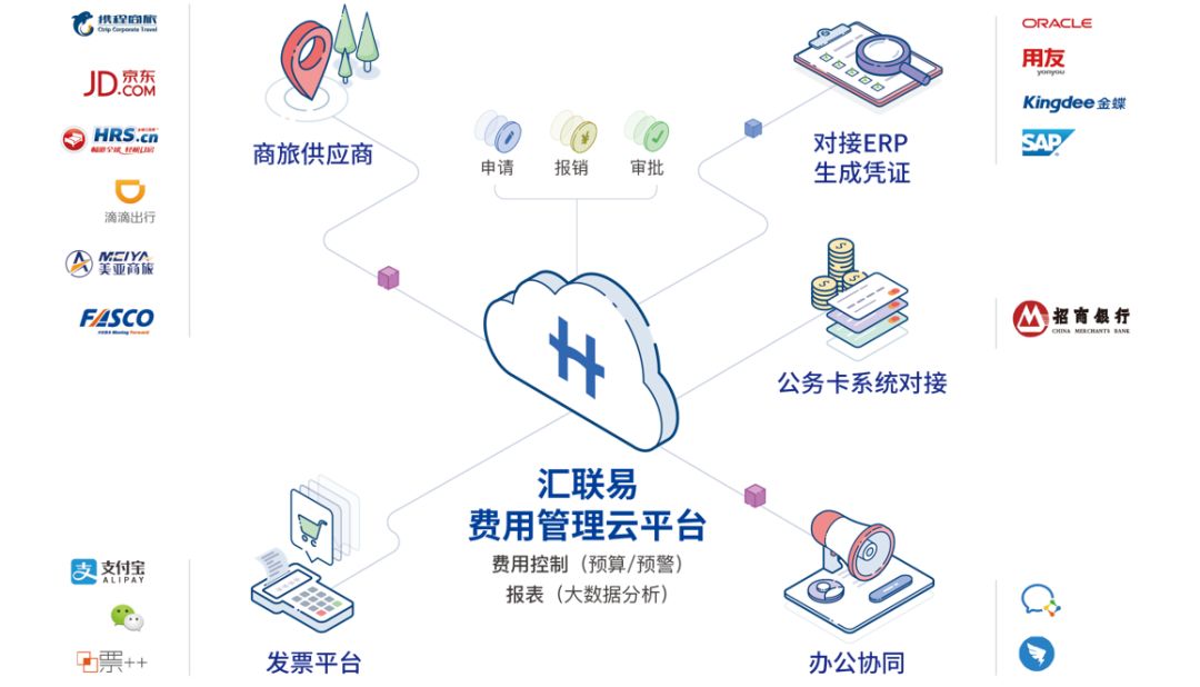 万象城AWC信息内部孵化的SaaS产品汇联易,能够顺利获得机票预测与审批、多元化报销、审批标准的内置、发票验真及自动审核等人性化的功能设计,满足使用者及管理者的要求;并且在与外部系统的打通上,包括商旅供应商、发票供应商、办公供应商及ERP系统都做了标准化的内置,解决了平台型连通的问题。