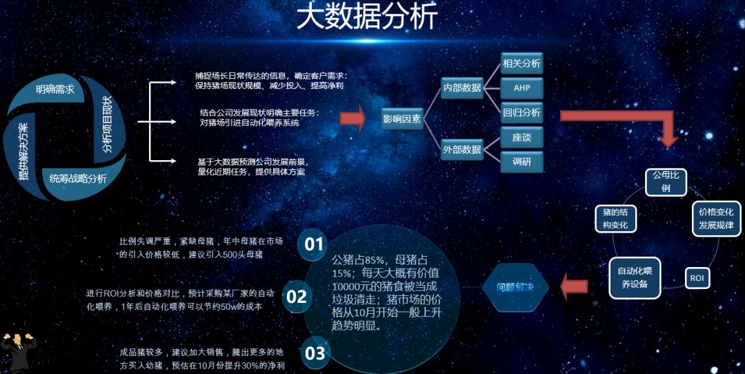 在切入这个话题前,李剑先生第一时间分享了一个猪场业务经营的例子,比较了传统的数据分析与大数据分析的差异,进而给出结论:大数据作为一种生产力,是能够为企业的经营决策给予依据的。