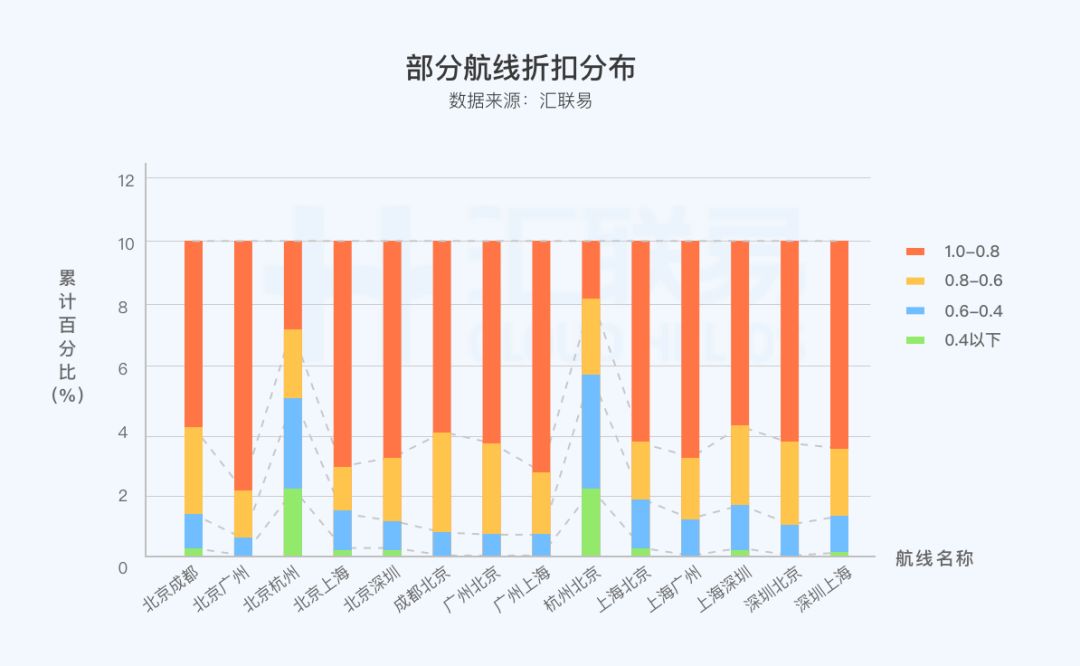 城市间交通费用是差旅成本中占比较高的部分,我们就此进行了机票折扣的相关分析。
