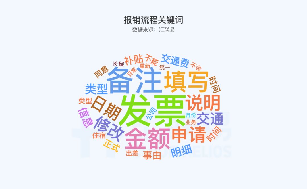 报销单驳回理由千差万别,根据汇联易大数据,抽取了会计审核过程财务的驳回理由,顺利获得对驳回理由的词频分析,抓取出差党在报销时究竟是哪一项原因导致报销被驳回。