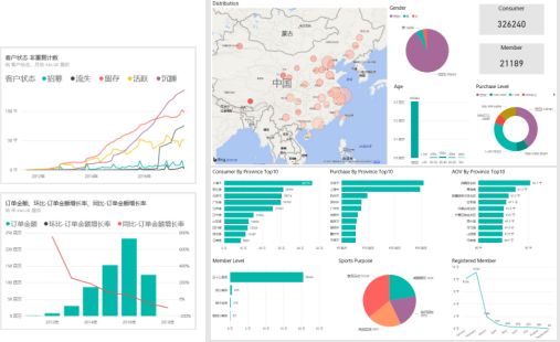 与Power BI完美集成,多个报表联动展现,会员动态数据一目了然。