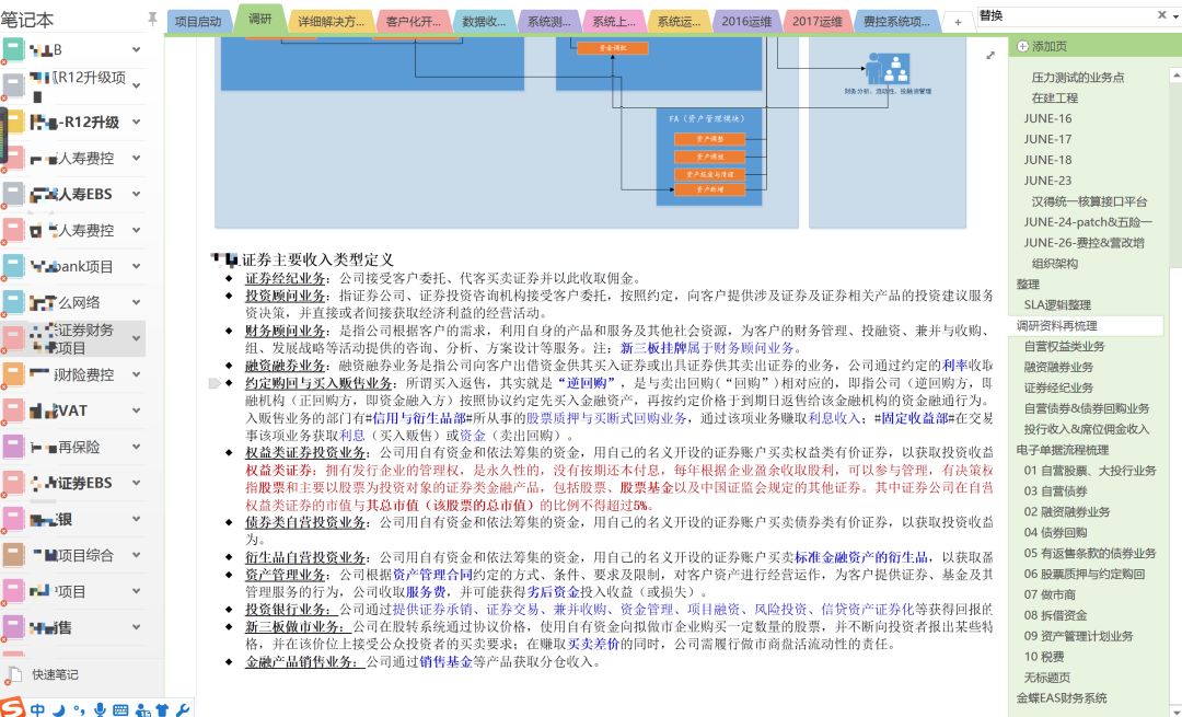 C的Onenote宛如一个百宝书,满满当当都是项目总结,各行业、各项目,分门别类,涵盖从2010年进公司至今的所有项目,光看名字就让人目不暇接。“大学时就如此,只不过那个时候没这么好的工具,都是纸质版的”。