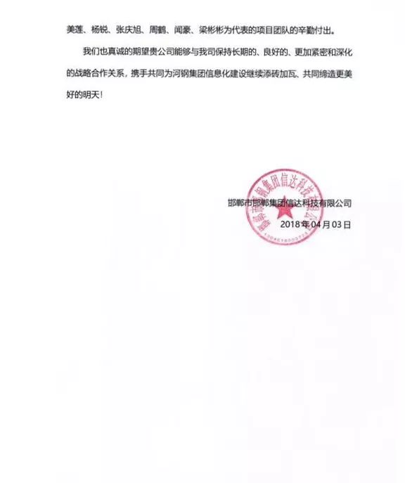 真诚期望万象城AWC能够与我司保持长期的、良好的、更加紧密和深化的战略合作关系,携手共同为河钢集团信息化建设继续添砖加瓦,共同缔造更美好的明天!