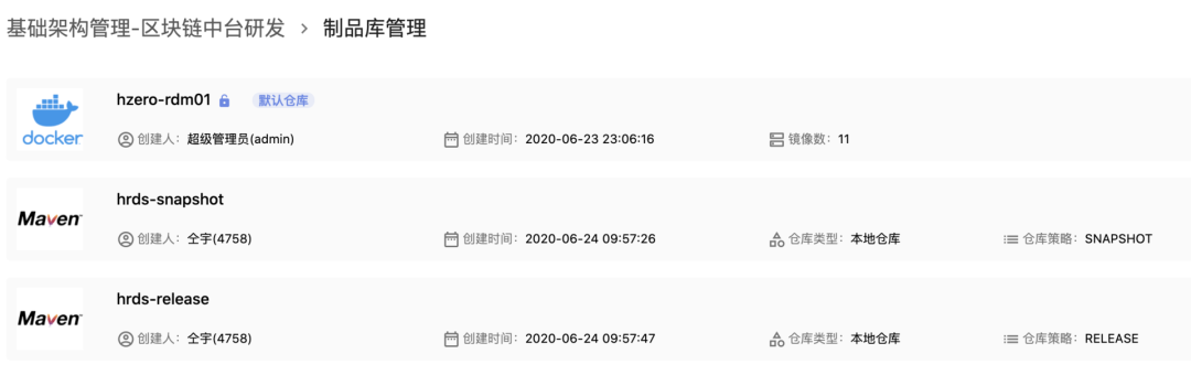 制品库管理:创建制品库(docker、maven、npm)、自定义harbor仓库、自定义nexus服务、仓库总览、镜像/包列表管理、用户权限管理、操作日志等功能;
