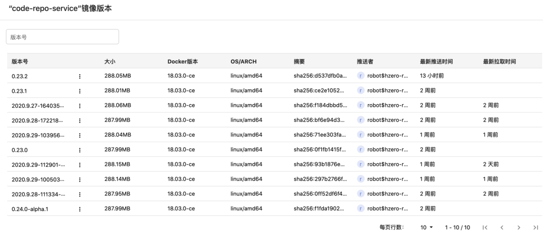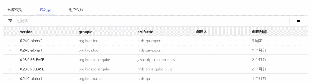 镜像/包管理功能: 支持查看与发布仓库下镜像/包列表。