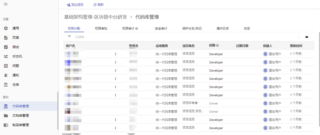 权限分配功能支持查看和分配团队成员的代码库权限;