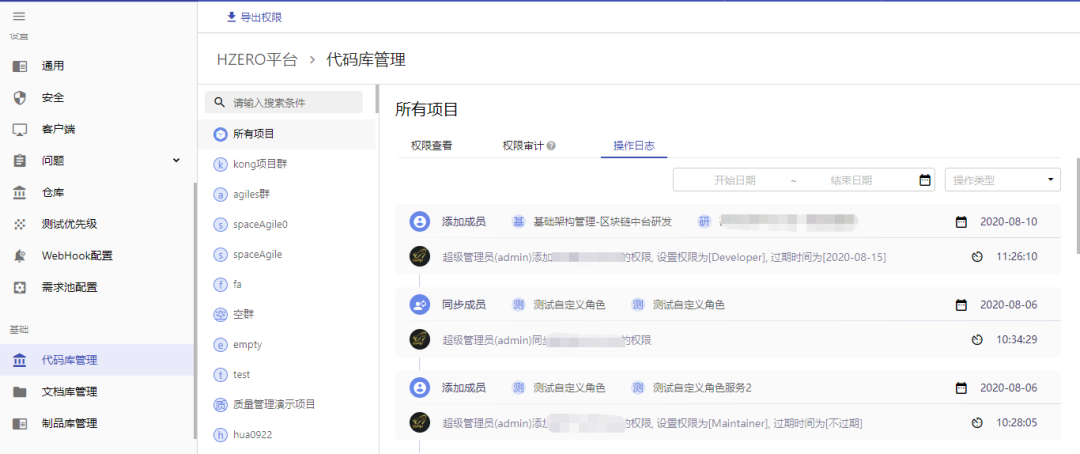 组织层新增"代码库管理"模块,包括权限分配、权限审计、操作日志等功能;
