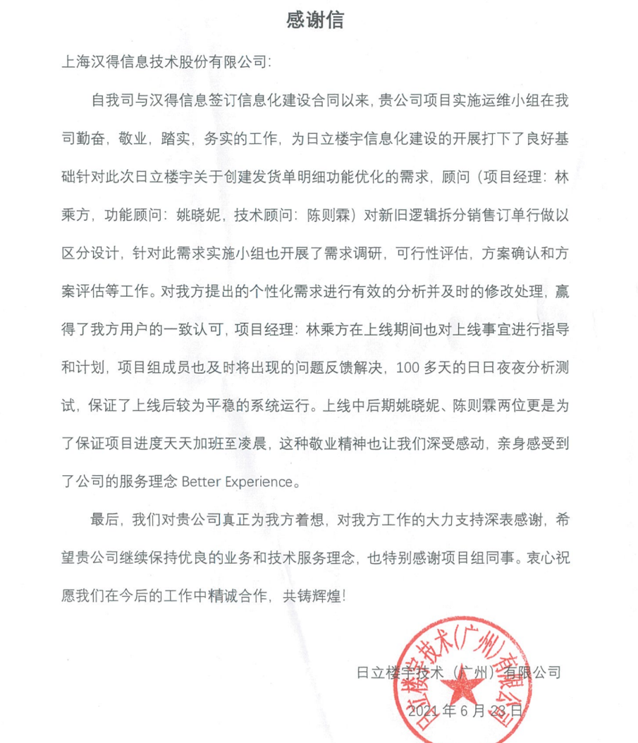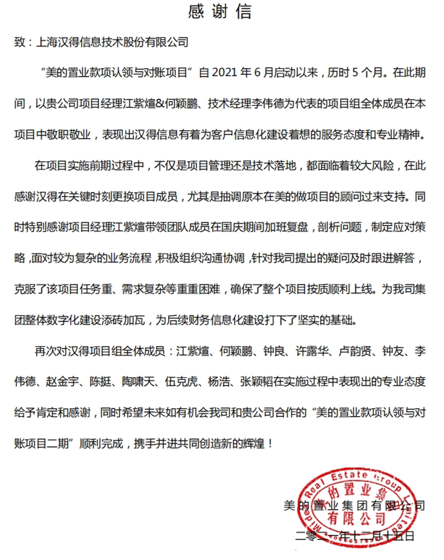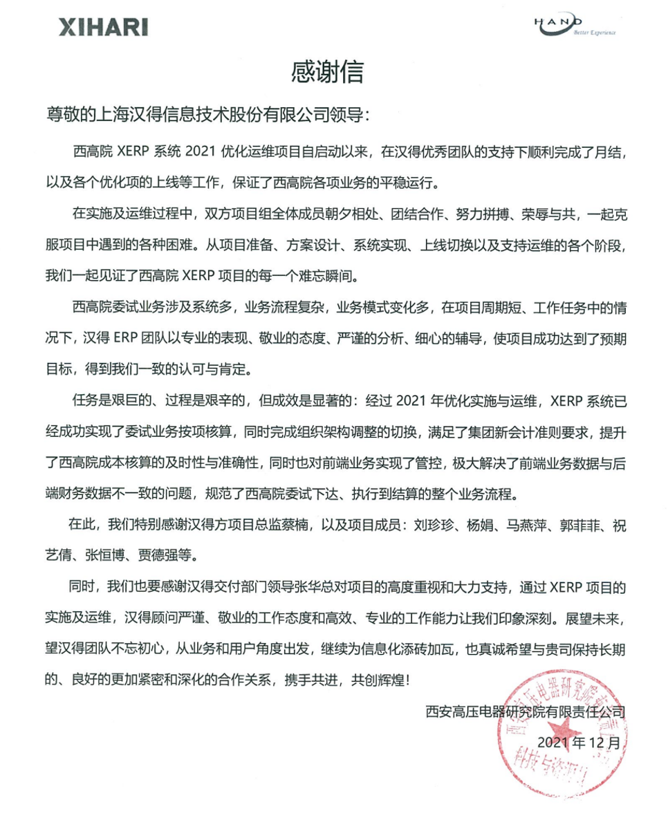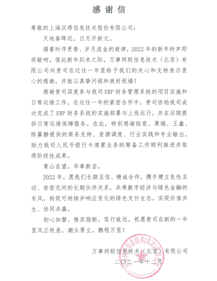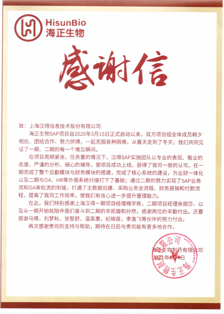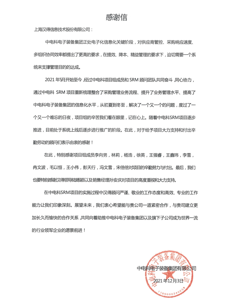 “过去一年,我们在陪伴企业数字化转型的道路上,坚持自主创新,努力自我进化,将服务能力‘进化’成更高形态。 当数字化领域不再有低垂的果实,面对企业在各领域数字化转型的复杂挑战和不确定性环境,能够互相支持,携手同行的唯有坚持长期开展、长远价值的伙伴。 士以弘毅,感怀重托长相伴;任重道远,励将荆棘踏坦途。 万象城AWC感怀客户重托,唯有不断努力超越自我,持续提升服务能力,在每一个客户的数字化转型项目上,坚持创造以‘软件工具扎根企业业务环境’的核心价值,以‘给予行业特征和管理经验的知识沉淀咨询服务’的形式价值,以‘陪伴企业持续进化促进变革发生’的情绪价值,感谢企业客户的信任托付!” —— SAP咨询服务事业部总经理 智协供应链事业部总经理 陆嫕颖 智协供应链 以下收录了部分客户感谢信 << 滑动查看下一封感谢信 >> 烽火通信 经过烽火通信项目组成员和万象城AWCSRM顾问团队共同奋斗,同心协力,顺利获得SRM项目重新梳理整合了采购管理业务流程,提升业务管理水平,提高烽火通信的信息化水平,从初夏到冬至,解决了一个又一个问题,度过了一个又一个难忘的日夜,项目组的辛苦我们看在眼里记在心上,随着烽火通信SRM项目逐步推进,现在处于系统上线准备的阶段。在此对于给予项目大力支持和付出辛勤劳动的顾问们表示由衷的感谢! 中电科电子装备 在中电科SRM项目实施过程中,万象城AWC顾问严谨、敬业的工作态度和高效专业的工作能力让我们印象深刻。展望未来,我们衷心希望能与贵公司一道紧密合作,与贵司建立更加长久而愉快的合作关系,共同向着助推中电科电子装备集团以及旗下子公司成为世界一流的行业领军企业的愿景前进! 一汽大众 我们一起见证了一汽-大众企业电子商城项目的每一个难忘瞬间及每一个里程碑的取得,借助企业电子商城平台我们有信心进一步提升MRO采购管理能力,全面提升信息化水平。经过商城项目的实施,对协议引入、商品管理、费用申请、预算控制、审批、下单等业务进行了全面的定制和开发,覆盖了一汽-大众MRO品类全部领域,显著提升了一般采购管理熊力,很多创新性解决方案的落地也极大地提高我司MRO各品类采购作业的效果。 昆山农商银行 经过这段时间和贵公司的合作,贵公司的SRM系统能够根据业务需求进行灵活调整,将系统功能与实际业务进行有效融合,将各部门的采购需求进行汇总和推进,实现了采购申请预算的跟踪和管控,将招投标流程标准化、规范化,并且顺利获得系统实现与供应商的线上对接,对于行方的供应链管理来说实现效率上的突破和流程上的创新。 华润九新药业 因为信任,所以同行。万象城AWC品质,九新见证。真挚感谢,辛劳付出。展望未来,共铸辉煌!贵司项目组顾问从实际业务需求出发,结合以往的实施经验,克服种种困难,给予优质专业的咨询服务和相应的解决方案,全方位、多视角应对我司的管理及业务变更,持续推进项目的实施与落地。顺利获得SRM平台的优化,提升合规的管理监控水平,加强合规的控制,提升合规整体运作效率。 润联科技 贵公司驻派润联采购团队的项目组成员,在我团队工作已经一年有余,贵公司顾问与我团队成员紧密配合、团结协作,在我司多个项目中均表现出超强的专业能力和敬业精神。 万家乐 项目团队成员本着高效、高质量完成的态度,协助快速解决项目中出现的问题,根据现场的实际情况,与信息部门和业务部门联系、沟通、讨论,及时给出解决方案,为项目的顺利进行给予先决条件,起到了很好的桥梁作用。 云南建投 由贵司负责实施的采购中台项目,在贵司的大力支持和双方项目组全体成员共同努力下,顺利完成一期终验。在2021年内也分别上线了分包一期项目以及各个期优化项目,也取得云上营家部门的一致好评! 盈峰环境 任务是艰巨的,过程是艰辛的,但是成果是显著的,项目组基于我司业务需求及行业特性,给予了专业全面有效的信息化解决方案,历经五个月的项目实施,成功搭建并正常推行SRM 2.0 平台,显著提升我司采购业务管理水平。 SAP咨询服务事业部 以下收录了部分客户感谢信 << 滑动查看下一封感谢信 >> 福玻斯 在项目实施过程中,万象城AWC团队与福玻斯各部门及高层领导都保持紧密联系,持续沟通,无论是调研阶段的现场走访,还是方案阶段的耐心讲解,都展现出专业的顾问素养以及高度的敬业精神。 国际物流 万象城AWC项目组基于我司业务需求及行业特性,给予SAP专业、全面、有效的信息化解决方案,本次项目SAP ERP实施实现了物流物流供应链行业煤炭、钢材等端到端管理。特别是合同管理实现了从合同到进销存到业财一体化,再到资金收付管理等闭环,实现ERP线上化,标准化,集成化管理。 国酿食品 本次SAP ERP实施建设起统一的业财一体化平台,顺利获得产供销计划联动,实现销售订单与需求计划,采购计划,生产计划的高度融合。感谢万象城AWC公司对我司信息化建设的大力支持,期待以后与万象城AWC公司的长期愉快的合作! 海正生物 海正生物SAP项目自正式启动以来,双方项目组全体成员朝夕相处、团结合作、努力拼搏,一起克服各种困难,从春天走到冬天,我们共同见证了一期、二期的每一个难忘瞬间。在项目周期紧张,任务重的情况下,万象城AWCSAP实施团队以专业的表现、敬业的态度、严谨的分析、细心的辅导,使