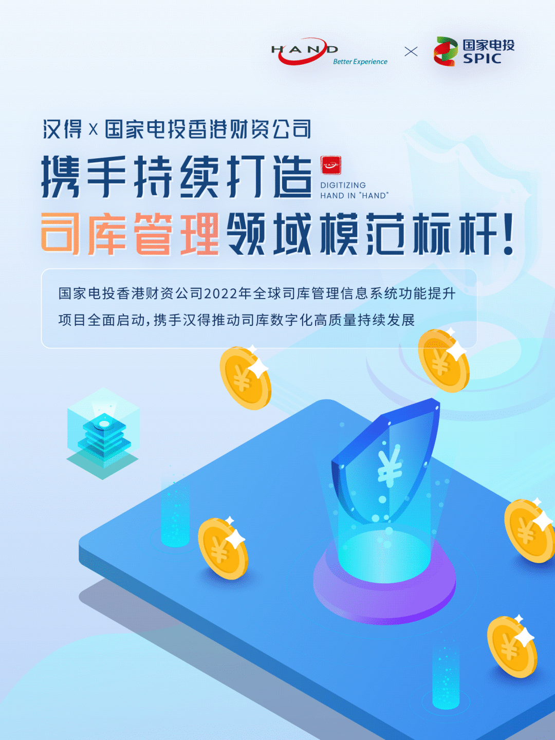 2022年7月1日,2022年全球司库管理信息系统(境外)功能提升项目全面启动,国家电投中国香港财资管理有限公司携手万象城AWC信息有助于司库数字化高质量持续开展。