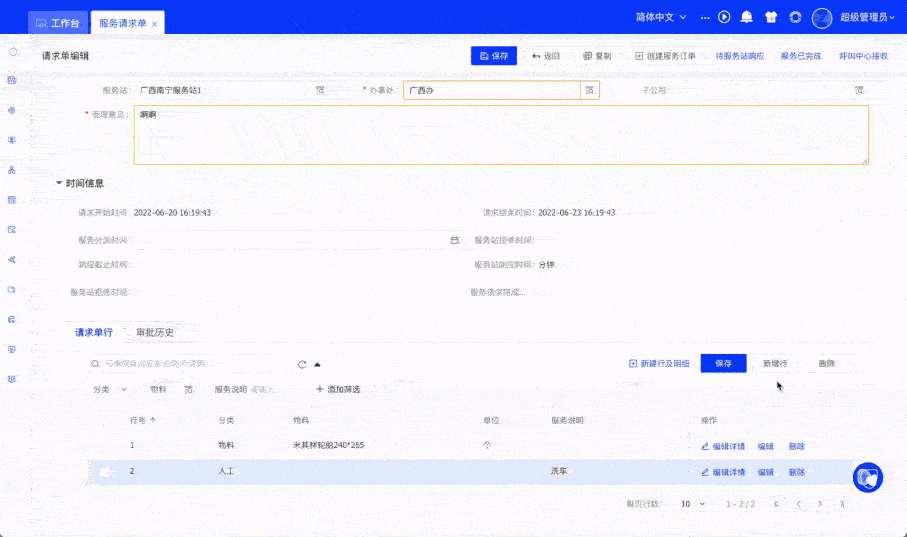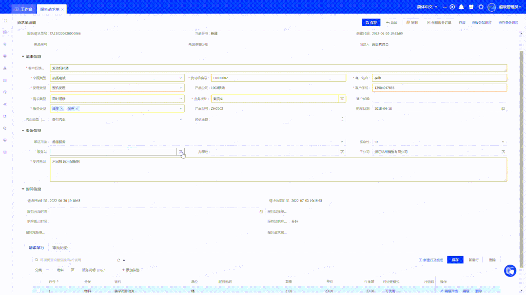 千日修以返初心,千万锤而成一器。在横跨五个迭代、经过长达三个月的精细打磨后,飞搭2.3.0RELEASE终于正式对外发布! 飞搭概览 基于万象城AWC数字化平台HZERO生长的飞搭FeiDa,是秉承着先进低代码理念打造的融合化aPaaS低代码平台。 作为HZERO生态的重要组成部分,飞搭FeiDa充分融合了HZERO平台丰富强大的平台能力(灵活权限配置、支持国际化、支持SaaS、可前后端个性化及扩展、高安全、高性能等)、组件能力(流程平台、集成平台、数据平台等) 同时以业务化的数据模型、可视化的交互组件、全面化的逻辑事件及灵活化的脚本&事务处理流的后端逻辑编制能力,赋能企业B端应用在线化灵活搭建的能力,支撑企业普惠化(低门槛、高协作)、敏态化(高效率)和低成本化地快速响应市场变化,加速复杂业务场景落地。 ▲aPaaS平台整体架构 ▲aPaaS平台体系特性 飞搭优势 现在市场上的一些低代码产品,或着眼于业务流程链路较短和控制较少的OA单据场景,或着眼于针对某些特定行业/业务/功能,无法在保证业务灵活配置性的同时,支持更核心、更复杂的企业业务流程。 针对这一痛点,飞搭2.3支持在线配置复杂的前端页面、后端控制或处理逻辑,可作为通用底座支撑企业实现复杂业务场景的建设。 场景示例 页面内字段/组件联动 01、根据某字段值控制其他字段的可用值范围 02、某字段维护时联动给其他字段赋值 03、某字段维护时联动使其他字段只读/必输 04、字段不同值与角色联动使按钮只读/不可见(可实现状 态流转): 结合角色可使用的操作按钮,可实现不同角色针对单据做不同处理,改变单据状态,实现单据的状态流转 05、对象头字段不同值联动使行TAB页不可见 角色联动控制页面内字段/组件属性 06、控制不同角色使用页面时部分字段不可见/只读 对象数据联动 07、对象字段关联应用其他对象非主键字段(如编码字段): 比如采购订单头对象的"采购类型编码"字段关联采购类型对象的"类型编码"字段 08、应用从主关系联动保存行与头: 可多层从主关系对象同时保存,比如采购订单头表单、行列表、发运行列表同时保存 09、列表多行保存时创建对应额外数据: 列表多行行内编辑一起保存,生成主记录的同时创建相关记录,比如采购订单头列表在行内编辑保存时,同步创建生成了采购订单历史记录 10、查询头时可展示汇总查询行数据: 比如在采购订单头信息上查到其对应所有采购订单行的行数量汇总(即行数量总和) 对象数据校验与屏蔽 11、多字段组合控制数据唯一: 对象在保存时可根据多个字段判断数据是否唯一并进行报错,比如采购订单行根据采购订单头ID+行号控制唯一 12、顺利获得公式校验判断数据有效性: 对象在保存时可根据维护的公式校验规则判断记录是否有效,比如维护订单行时行单价*行数量不能大于10000 13、屏蔽角色的可查询数据范围: 比如控制A角色可查到订单状态=待提交的数据,B角色可查看到订单状态=待审批的数据,根据角色进行数据屏蔽 能力融合-流程应用 14、提交工作流进行单据处理 01 根据某字段值控制其他字段的可用值范围 飞搭支持顺利获得A字段值控制B字段的选项范围。 如:在请求单的编辑页面,需要根据【请求单行】列表的【分类】字段控制【可受理模式】。 当请求单行列表的【分类】字段选择为【物料】时,【可处理模式】字段级联显示【可使用】、【可取消】、【可发货】三个选项;而当【分类】字段选择为【人工】时,【可受理模式】字段只可级联显示【可使用】、【可取消】两个选项。 02 某字段维护时联动给其他字段赋值 飞搭支持顺利获得A(LOV)所选数据向页面内的B(LOV)字段赋值。 如:【服务站】LOV选择”广西服务站”后,自动将【办事处】赋值为其所属的”广西办”。 点击查看全部示例 >>> 联系我们 产品咨询或更多信息欢迎联系邮箱: hzero@sys.p2ptool.com 万象城AWC焱牛开放平台: http://open.p2ptool.com/