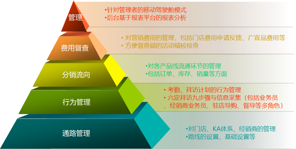 构建公司层级营销管理平台,管理渠道客户信息、渠道销售信息与渠道费用信息的统一,提高沟通效率,促进信息透明清晰化;