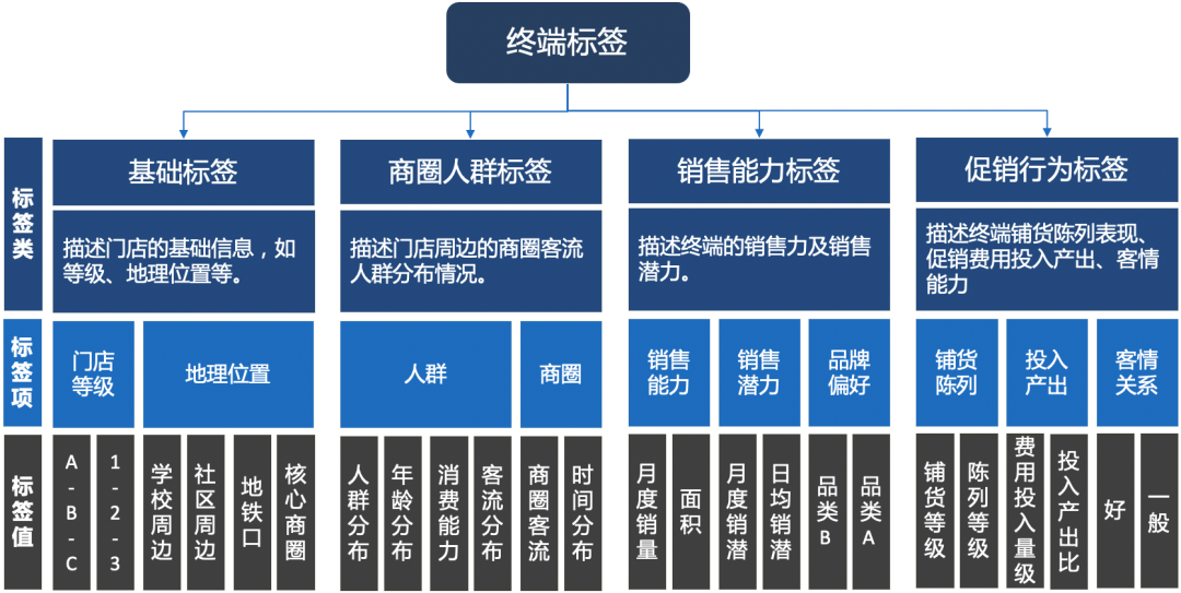 引入终端大数据,帮助区域销售团队分析终端市场覆盖、终端标签画像,精准指导区域销售团队的市场开拓;