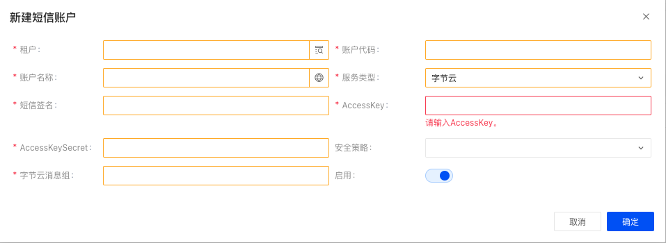 新增字节云短信配置及适配组件、维护上行队列和回调地址