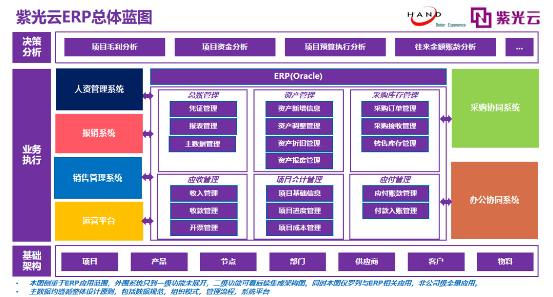 本次项目的难点在于,Oracle EBS作为后端财务系统,需要与包括采购管理系统、销售管理系统、办公协同系统等等系统在内的6个业务系统完成集成,并同时上线,对项目组的专业能力和项目进度的把控能力有极高的要求。