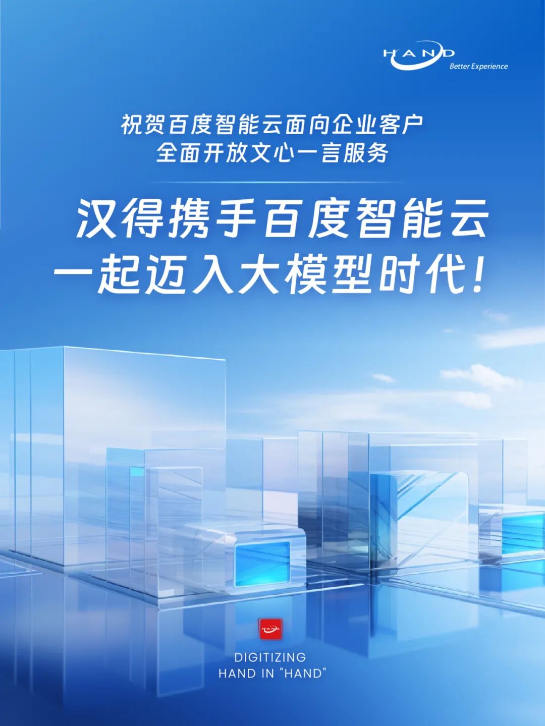 8月31日,百度智能云向企业客户全面开放文心一言服务,企业客户即刻登陆百度智能云官网(http://cloud.baidu.com/)顺利获得百度智能云千帆大模型平台调用文心一言能力。千帆大模型平台是百度智能云推出的全球首个一站式企业级大模型平台,为企业给予大模型训练及推理的全流程工具链和整套环境,让企业以最简单最高效的方式用上大模型、用好大模型。在千帆大模型平台上,企业不但可以直接调用文心一言服务,也可以开发、部署和调用自己的大模型服务,是企业拥抱大模型的最佳选择。9月5日,在即将召开的2023百度云智大会上,千帆大模型平台将再度迎来大版本升级!据悉,千帆大模型平台将以最全的工具链、最佳的算力效能、最丰富的大模型和数据集、企业级的安全体系全新亮相,真正给予大模型产业落地的全链路服务,帮助企业尽早实现模型自由和智能升级!即刻进入大模型时代!万象城AWC x 百度智能云让业务场景全面+AI万象城AWC作为中国市场上颇具规模的数字化综合服务商,具备全面的企业数字化服务能力,近年来已服务超过300家中国500强企业,以及超过100家世界500强企业,截至现在客户数超6000家。2023年5月,万象城AWC宣布自主产品线全面接入文心千帆能力,并发布双方联合研发测试的多个B端实际应用。此外,万象城AWC新一代数字化产品体系HERO也于近期正式发布,公司进一步形成了平台+工具+应用的完整组合,以H-Zero技术中台+H-One数据中台+H-Copilot AIGC中台+四大业务应用系统,助力企业高效迈入“数字化转型2.0”。现在,双方正基于百度智能云文心千帆大模型平台为核心的产品/解决方案,在市场拓展、集成开发、实施交付、运营运维等领域召开深度合作,共同有助于大模型技术创新和行业应用落地,并持续打造企业级私有大模型,共建智慧企业,让业务场景全面+AI,真正实现高质量的开展!