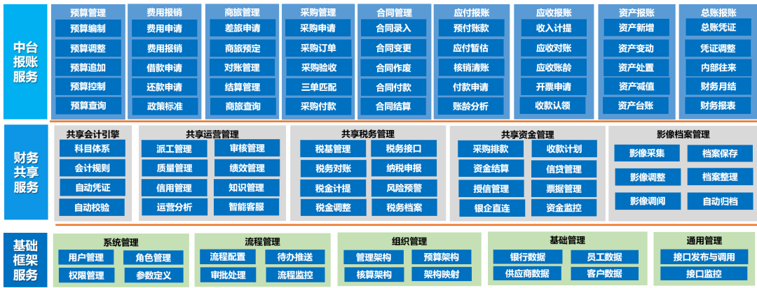 帮助企业实现5G时代的数字化转型升级,形成战略财务、业务财务和共享财务三层管理架构,支撑运营数字化、管理智能化、业财融合化、服务共享化、系统平台化的企业战略目标