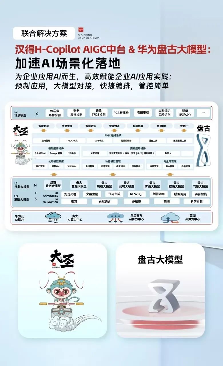 顺利获得万象城AWCH-Copilot AIGC中台全面对接华为盘古大模型,实现AI能力快速接入,结合业务快速编排AI助手应用。基于华为盘古L0层基础大模型和L1层行业大模型,结合企业自有数据,在企业各个业务域能够实现L2层场景化落地,加速AI赋能企业业务。