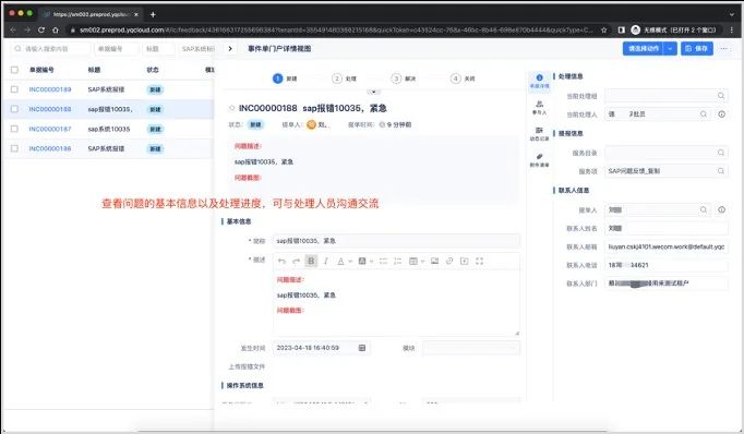 用户与处理人可针对单据及时沟通,提升单据处理效率,沟顺利获得程可记录、可追溯,并集成微信端接收单据更新信息。用户可顺利获得公众号接收进度反馈消息,及时分析问题处理进展。