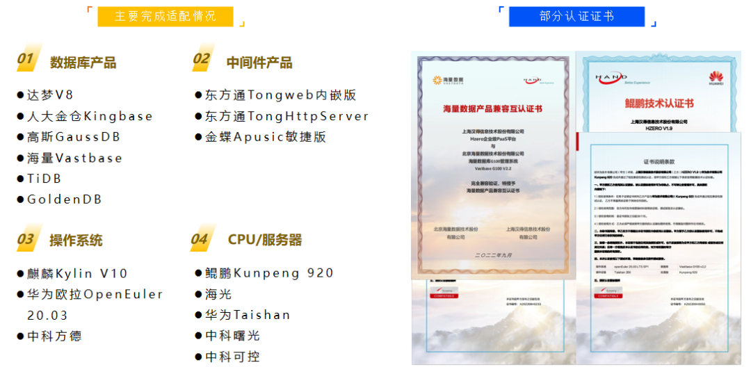 国产化、开源兼容,从环境监控、系统应用、服务器安全等方面持续响应信创战略,取得统信、麒麟、飞腾、宝兰德、东方通、中科可控、南大通用、中科可控、达梦、OceanBase 等适配认证。