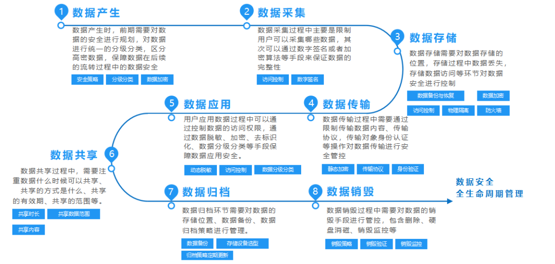 H-ONE给予从数据产生到销毁的全生命周期数据安全管理解决方案,在不同环节给予不同的数据安全技术手段,保障企业数据安全建设。
