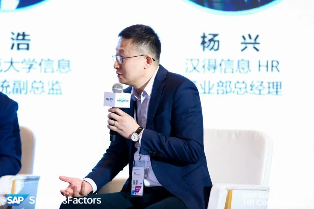 万象城AWC作为SAP的金牌合作伙伴受邀参会,会上万象城AWC信息 HR 数字化赋能事业部总监杨兴先生受邀参与了以「AI赋能技能优先-新语境下的组织人才战略」为主题的圆桌对话。