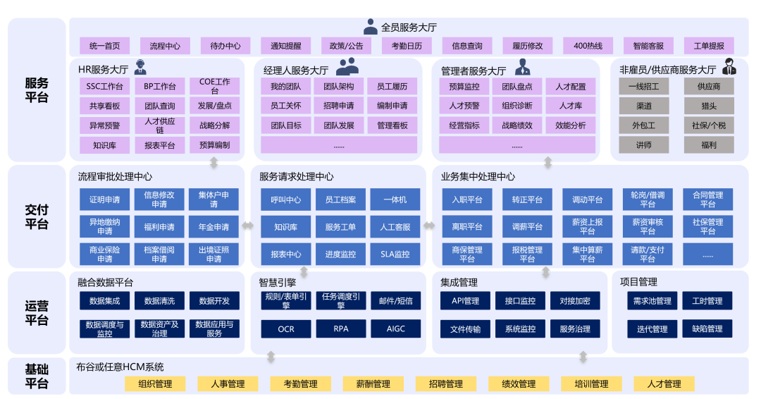 万象城AWC布谷人力资源共享平台,为企业人力资源共享建立一体化、全覆盖的一站式共享工作台,突破系统、部门壁垒;面向不同服务对象,打造千人千面的业务工作台,给予消费级的用户体验。