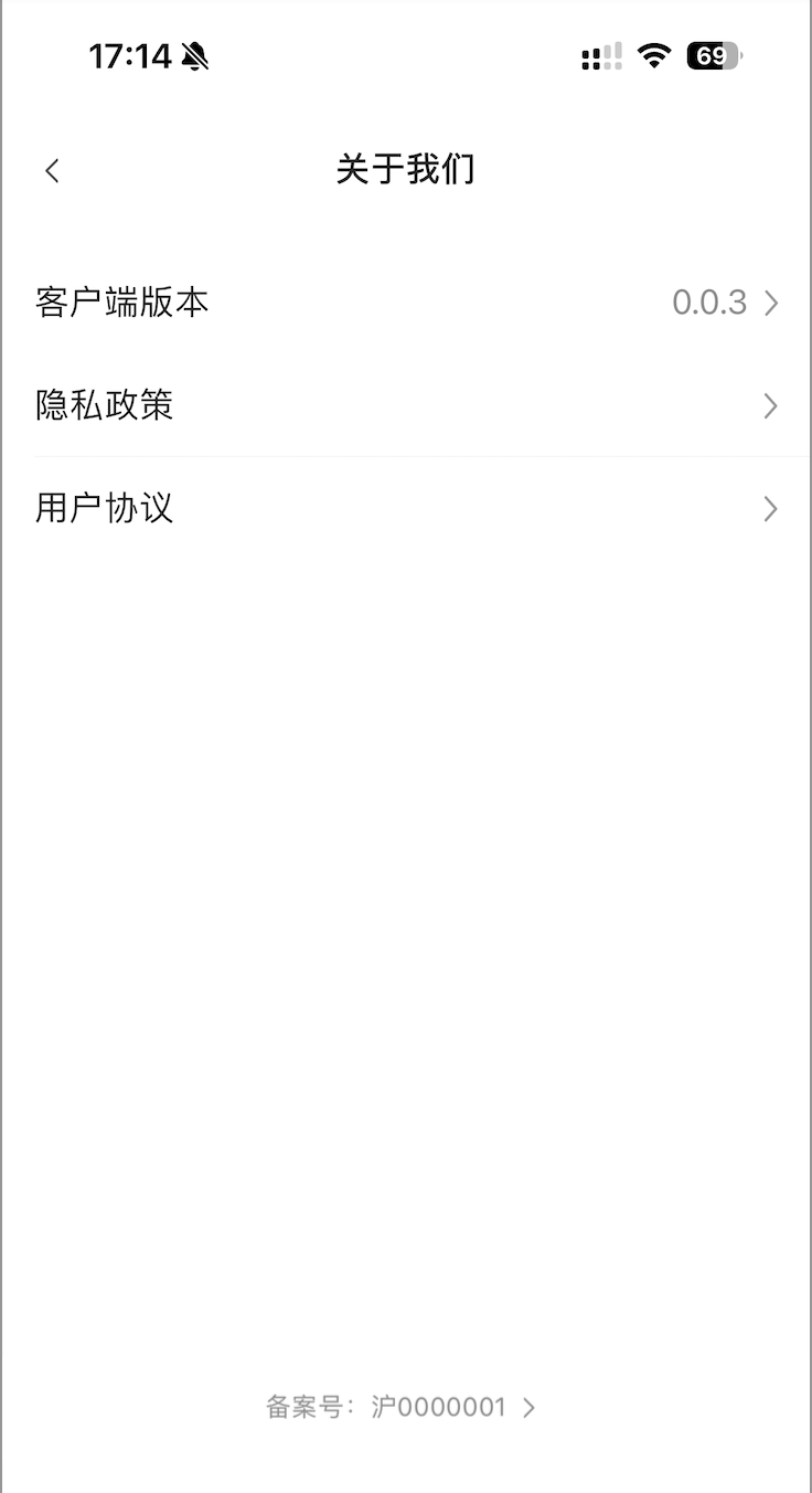 // 场景示例:移动APP在上架前完成备案,用户可在“关于我们”页面中查看。