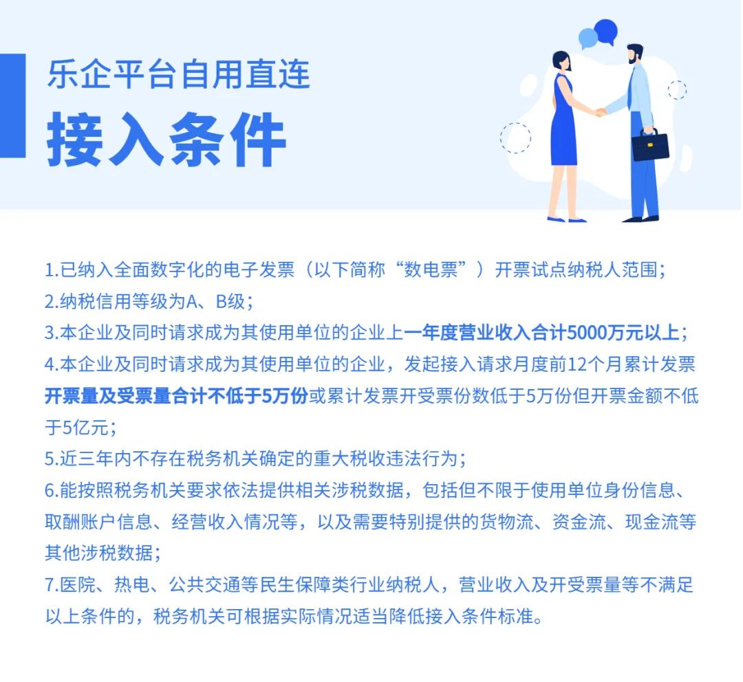 乐企平台的接入具有一定的技术门槛,要求企业具有专业的信息化建设、服务、运维能力;
