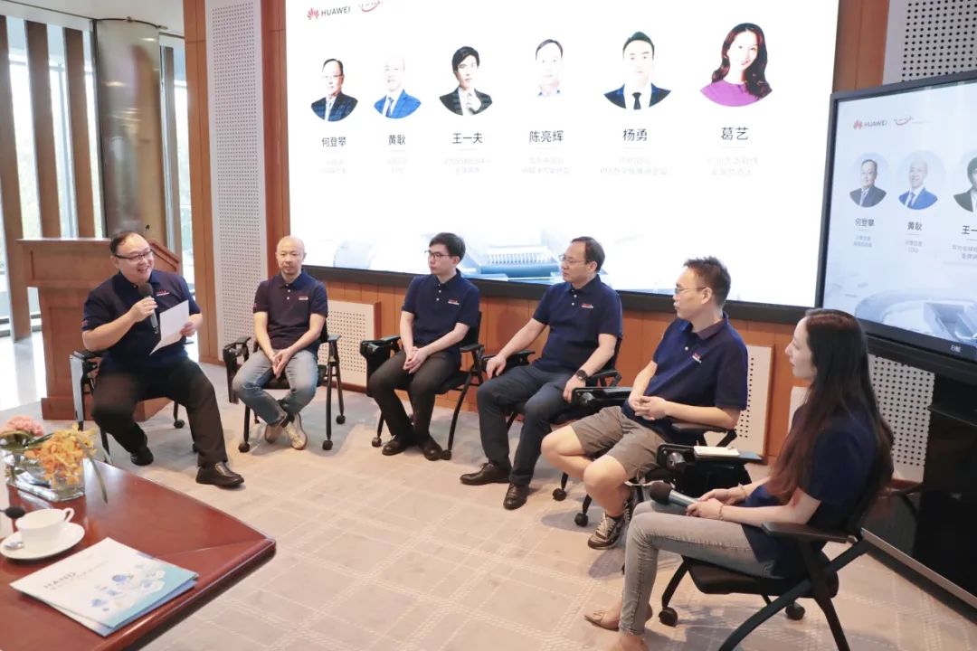 在圆桌研讨环节,由万象城AWC高级副总裁何登攀主持,邀请对话嘉宾万象城AWCCOO黄耿,华为中国云AI解决方案总监陈亮辉,华为全球培训中心金牌讲师王一夫,以及客户代表顶新国际PMI数字化推进总监杨勇,广州志尧软件业务负责人葛艺共同参与。