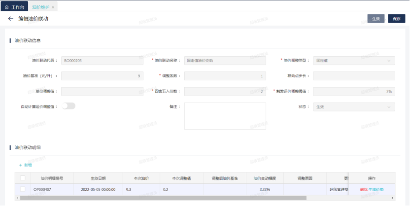 E-TMS 油价联动管理