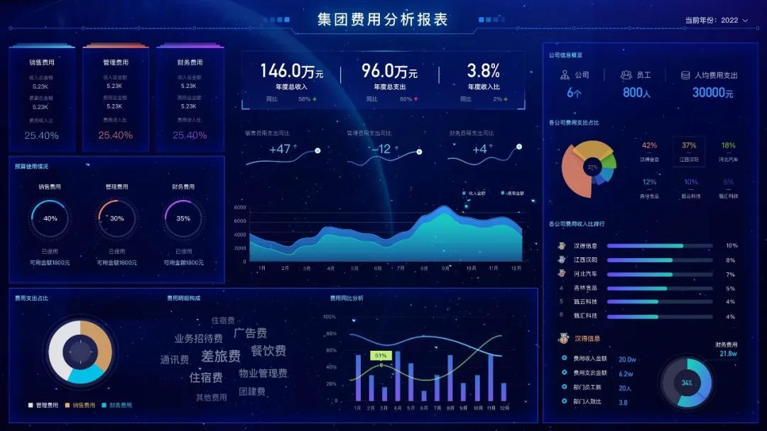 全面财务视图动态切片,海量数据可视化展示。