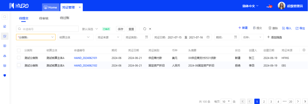 集凭证新建、审核、过账于一体,减少财务工作量。
