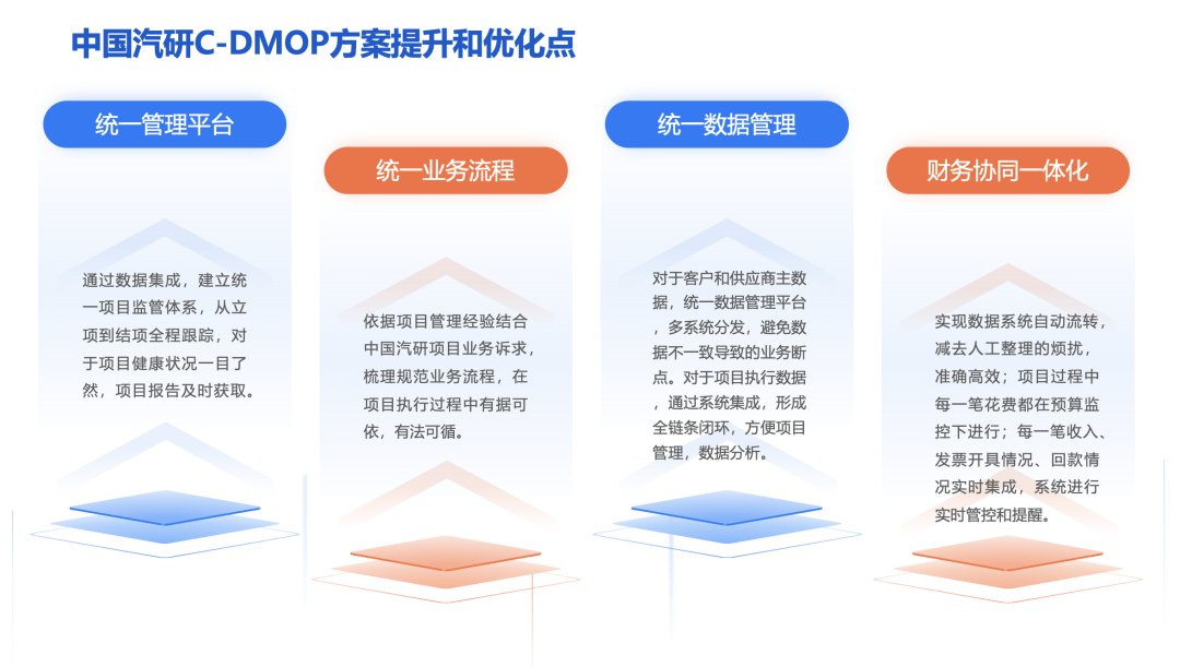 C-DMOP系统的实施,不仅提升了项目管理的效率和透明度,还促进了各部门之间的协同合作,有助于了整体业务流程的优化与创新。