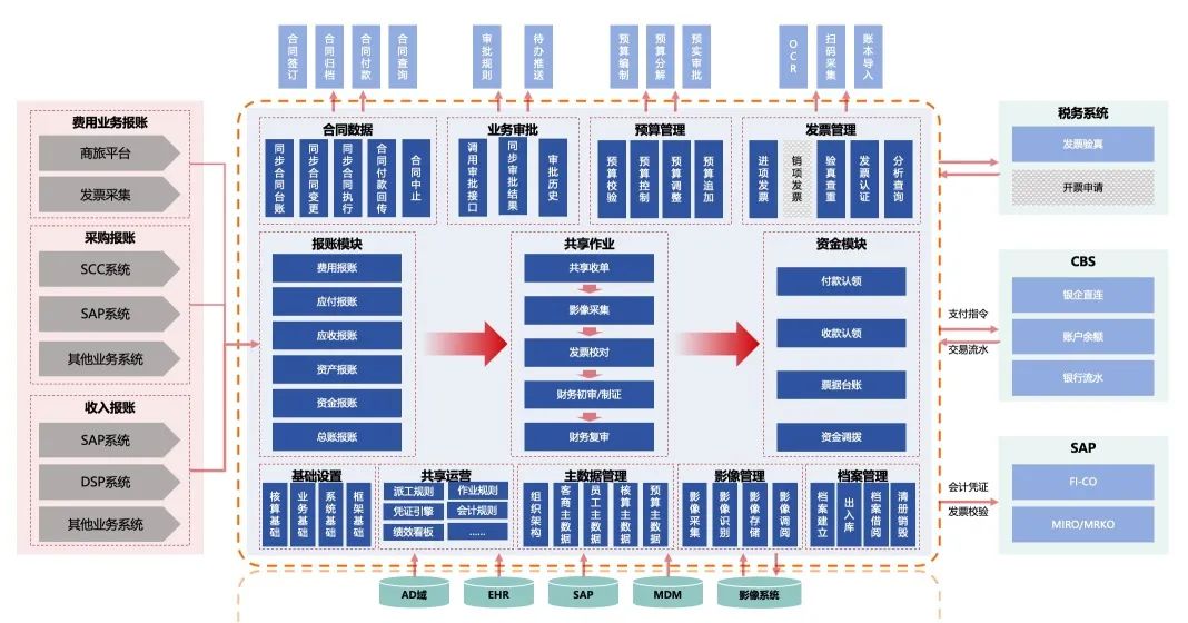 2022年底开始,万象城AWC帮助该企业建成一套财务数字化中台。该项目梳理11大主题域150+流程,设立300个自动化控制点;构建“费用到付款”“订单到收款”等八大核心流程闭环;打通15个系统130+接口,对接抖音、京东等30余家第三方平台。