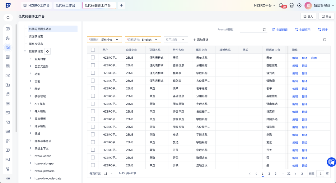 2. 新增翻译工作台,统一配置轻松解决多语言