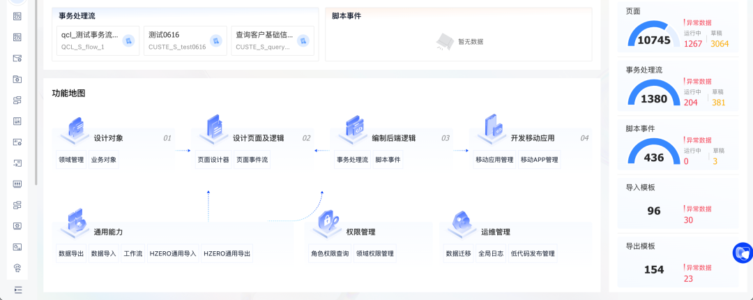· 布局灵活:列表数据域支持折叠字段/导航栏布局可灵活调整/多区域支持拖入卡片组