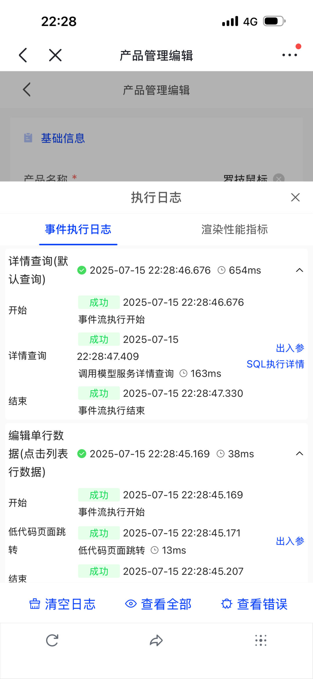 4. 移动端新增执行日志,助力低代码高效调优