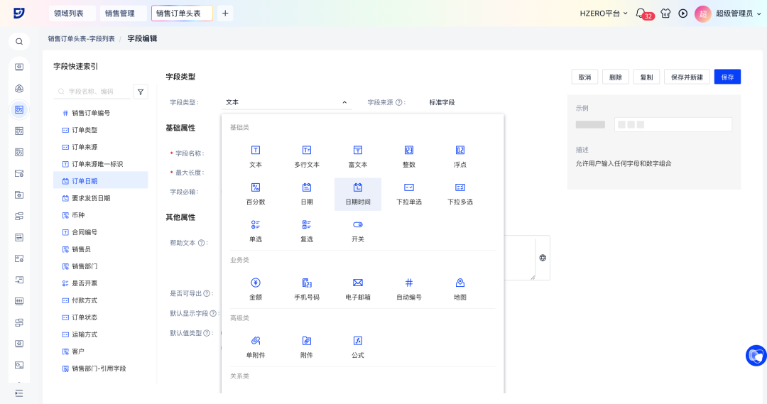 2. 对象字段支持切换所有字段类型,灵活调整