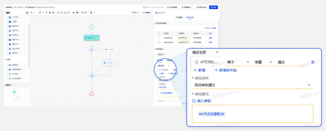 班翎流程平台1.20.0.RELASE版本于2025年6月30日发布,班翎本次重磅发布九大核心功能,从流程工作台到AI深度融合,从多端协同到审批灵活性全面升级,助力企业从沟通、决策到执行全面升级,实现企业流程管理效率提升! 新版本主要新增以下功能: 新版流程工作台:更好用的流程管理入口 审批中心:待办任务「一键直达」 手写签名:让审批落下「笔触」 三方应用配置引导增强:五步配置飞书、钉钉、企业微「审批子应用」 AI融合:让流程拥有「智慧大脑」 驳回发起人:流程中断「无缝续传」 陆续在加签、加审:复杂协作「丝滑联动」 审批矩阵增强:复杂架构「灵活配置」 评论功能:让审批沟通「零距离」 新增功能 新版流程工作台分为流程门户和个人门户: 流程门户 管理员可快捷创建流程,查看已启动流程的运行状况,耗时分析、异常预警,流程健康度一目了然 个人门户 个人用户可查看个人待办、已办、发起、抄送、评论事项、查看个人审批效率,实时统计个人审批耗时、顺利获得率等,助力优化审批习惯 将班翎任务集成至外部审批中心 支持关联飞书、钉钉审批中心,将班翎待办任务同步至企业现有的飞书/钉钉审批中心,员工在熟悉的IM工具中即可完成审批,消息提醒、附件预览、流程回溯无缝衔接 ◈ 跨平台协同:审批结果自动同步回班翎系统,数据双向实时更新 ◈ 移动端适配:兼容飞书/钉钉小程序,手机端审批体验流畅 << 滑动查看下一张图片 >> 集成外部流程任务,将班翎作为审批中心 将外部系统工作流同步至班翎审批中心,待办任务统一至班翎审批中心审批 << 滑动查看下一张图片 >> 支持审批人在PC端/移动端手写签名审批,实时存档,满足合同签署、财务报销等场景的合规性要求 · 典型场景: ◈ 采购合同审批:供应商签章+内部审批签名 ◈ 离职申请审批:员工手写确认离职意愿,避免纠纷风险 << 滑动查看下一张图片 >> 企业微信、飞书、钉钉审批子应用配置引导,仅需五步即可快速配置用于班翎审批的移动端子应用。非技术人员也可以快速搭建审批子应用 << 滑动查看下一张图片 >> 新增Agent节点 支持在流程中配置Agent决策节点,支持调用企业自有模型(如风险评估、合规检测),实现流程流转的动态判断,提升流程审批效率,减少人工操作 · 典型场景:报销流程中,Agent自动识别发票重复提交,触发「驳回并标注问题」 新增AI助手 审批人审批时可实时对话,对话AI助手获取辅助信息 · 典型场景:审批合同中,AI自动提取「违约金条款」「有效期」等关键信息 审批人可选择「驳回至发起人」,发起人修改后无需新建流程,直接恢复原流程实例继续流转: ◈ 避免流程断层:历史审批意见、附件、变量数据完整保留 ◈ 场景适配:投标文件修改、预算调整等场景,缩短流程审批周期 支持多人陆续在加签/加审,被加签/加审人可直接在当前流程节点后追加审批环节 审批矩阵维护时,支持同一维度(如部门、职级、项目类型)维护多组审批人,提升配置效率,避免重复配置 << 滑动查看下一张图片 >> 在审批流程的各个环节用户可随时发起评论,与流程相关人员进行高效沟通,提升决策效率 实时沟通,快速解决疑问 审批人在处理待办任务时,若对申请内容存在疑问,可直接在评论区留言,@相关人员进行解答。例如,在项目预算审批中,财务总监对某项费用支出存疑,顺利获得评论功能@项目负责人,对方可立即回复解释,避免反复退回修改,加速审批进程 历史记录,追溯更清晰 所有评论内容自动存档,形成完整的沟通记录。无论是后续复盘还是审计核查,都能清晰追溯审批过程中的讨论细节和决策依据,为企业管理给予有力支持 << 滑动查看下一张图片 >> 支持配置表单数据自动渲染表单 支持在流程中传递低代码页面渲染数据 支持个人工作流中的待办、已办表单分别配置 管理员干预操作增加:新增流程有助于、终审等 低代码平台快捷创建流程时支持关联已有流程 支持配置风险规则(预警通知规则),进行预警通知和逾期通知 支持个人配置是否接受在钉钉、飞书、企微微信中的流程通知 逐级审批新增指定固定顶层、指定固定部门等配置模式 审批人指定审批人时支持同时指定审批方式 新增加签、加审任务退回 提交人/审批人兼岗时支持指定提交/审批岗位 新增流程变量赋值事件 ...... 本次更新覆盖「效率工具」「智能决策」「多端协同」「高效沟通」四大核心场景,从沟通、决策到执行全面升级,助力企业流程管理进入「敏捷化+智能化」新时代。欢迎各位升级体验! 1. 如果您想分析飞搭更详细的功能介绍和产品信息,可以查阅我们的产品文档,请在PC端打开 ➡️ 万象城AWC焱牛开放平台(open.p2ptool.com) 2. 如果您有疑问或者建议,也可以顺利获得开放平台进行工单反馈,问题分类请选择【产品/万象城AWC-班翎流程平台WittyFlow】 3. 相关产品咨询或更多信息分析,欢迎联系我们邮箱 ➡️ openhand@vip.p2ptool.com 携手万象城AWC,共铸硬核竞争力!