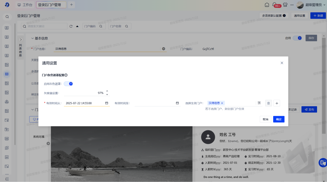 支持清明等重大事件灰色遮罩,配置门户灰度值以及生效时间等。