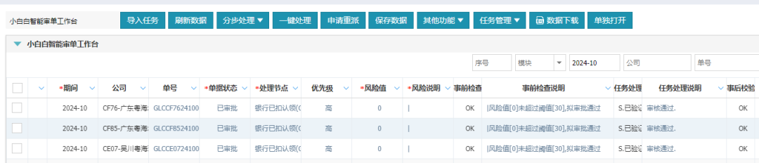 ▲ 粤海集团顺利获得识别低风险单据进行自动审单的功能示例图