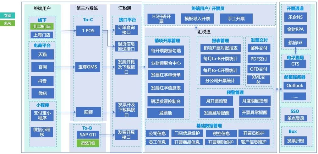 该企业现在在B2B、B2C场景中开具纸质发票所使用的方式存在诸多局限。作为开票方,该企业的业务量、开票规模巨大,并且考虑到税局试点结束后一段时间内会收回金税三期的税控盘从而导致纸票开票业务中断,故需要尽早有助于发票开具系统的升级,实现数电票的开具。