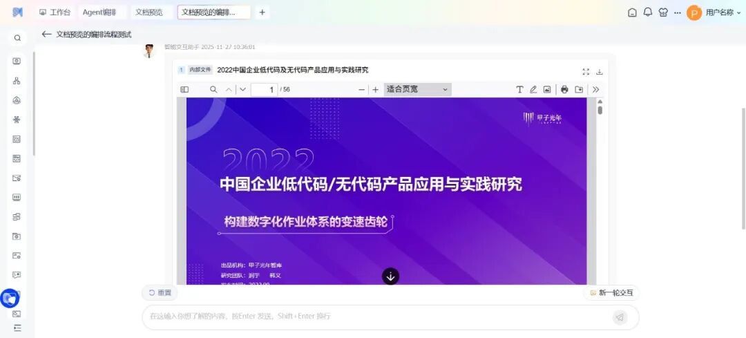 可在交互过程中直接展示内外部文件的预览页面,支持弹窗、标签页、内嵌等多种预览模式。